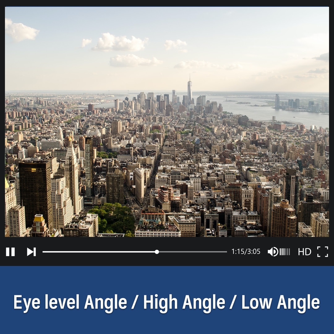 - Eye level Angle : มุมมองจากสายตามนุษย์ ส่วนมากจะใช้กับมุมมองแนวราบหรือมุมที่ผู้แสดงกำลังมอง