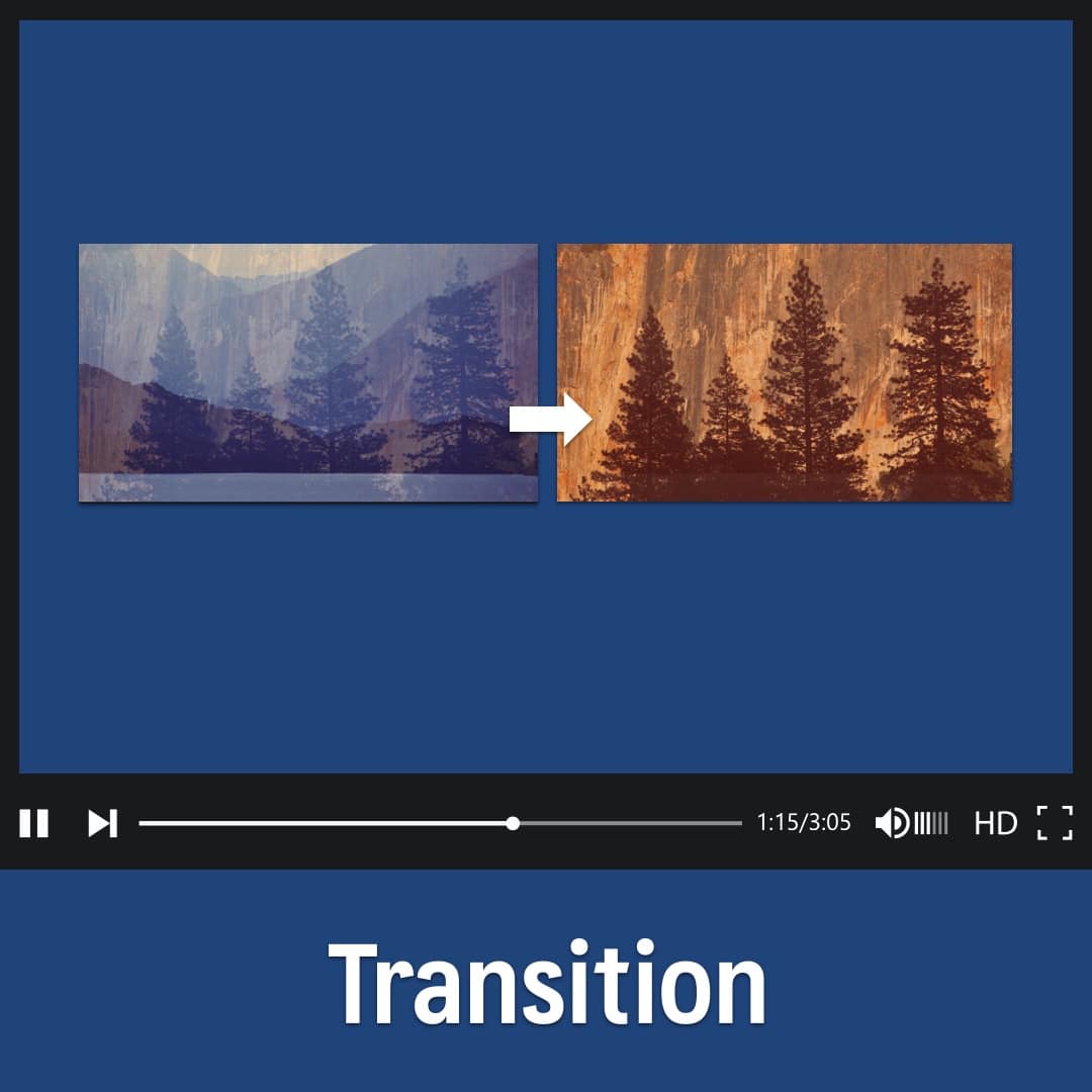 การเปลี่ยนผ่านของ shot วิดีโอจากคลิปหนึ่ง สู่อีกคลิปหนึ่ง ซึ่งอาจจะมีเอฟเฟกต์ในการเปลี่ยนผ่านดังกล่าว โดยมากในการกล่าวถึง transition มักจะหมายถึงเอฟเฟกต์ที่ใช้ในการเปลี่ยนช่วงของวิดีโอ เช่น “transition จุดนี้ดูยังไม่สมูท ลองเปลี่ยนรูปแบบดู”