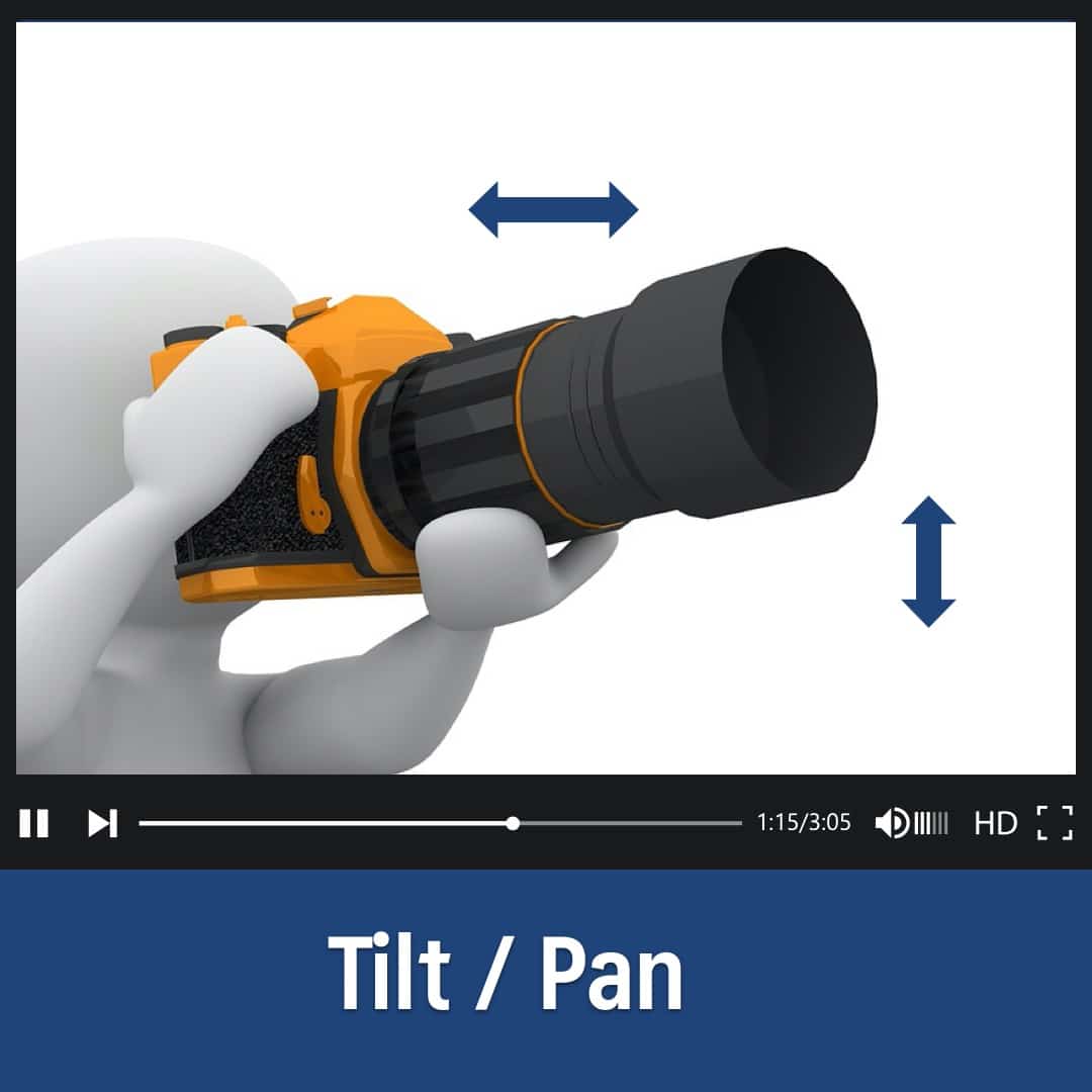 เป็นการบอกลักษณะการเคลื่อนไหวของมุมกล้อง โดยที่ตัวกล้องอาจจะยังอยู่กับที่หรือเคลื่อนไหวไม่มาก โดยที่ tilt จะเป็นการเคลื่อนไหวในแนวดิ่ง ขึ้น-ลง และ pan จะใช้ในการเคลื่อนที่ในแนวราบ ซ้าย-ขวา