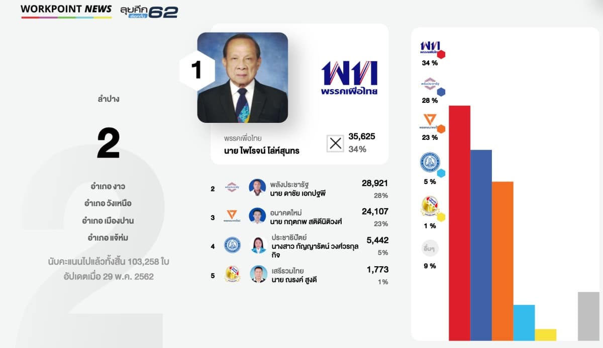 ตอนมีผู้สมัคร สส. ได้คะแนนขึ้นอันดับหนึ่ง จะมีใบหน้าแสดงบนกราฟิกสวยงาม จึงถูก capture ไปโพสต์บ่อย