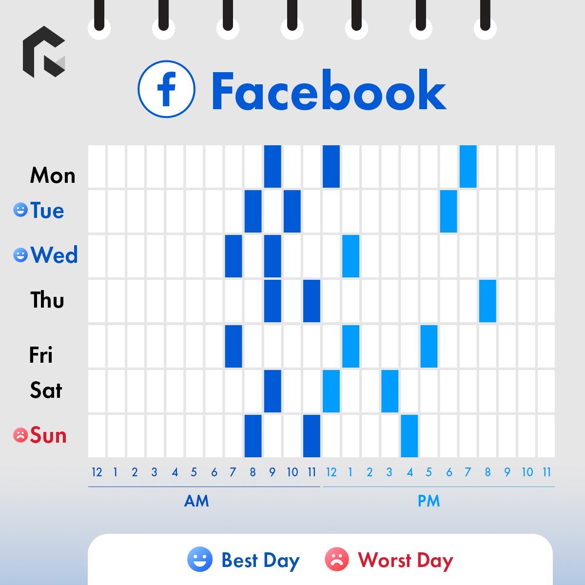 สำหรับเวลาที่เหมาะสมในการโพสต์ Facebook ที่จะทำให้ได้ยอด Impression มากที่สุดจะอยู่ช่วงเช้าตั้งแต่ 07.00 – 09.00 น. และวันที่ดีที่สุดคือวันอังคารและวันพุธ ส่วนวันที่ไม่เหมาะกับการโพสต์คือวันอาทิตย์