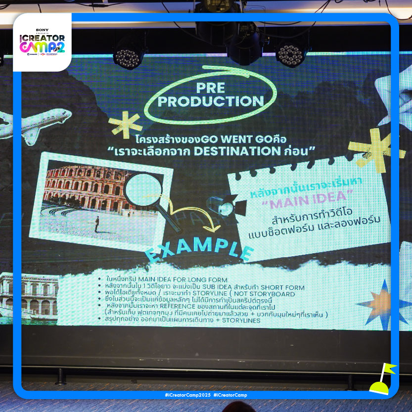 สำหรับ Go Went Go เริ่มจากการเลือก DESTINATION จากนั้นจึงเริ่มหา Main Idea สำหรับทำวิดีโอแบบยาวและวิดีโอแบบสั้น ซึ่งแบ่งได้ 6 ขั้นตอนดังนี้