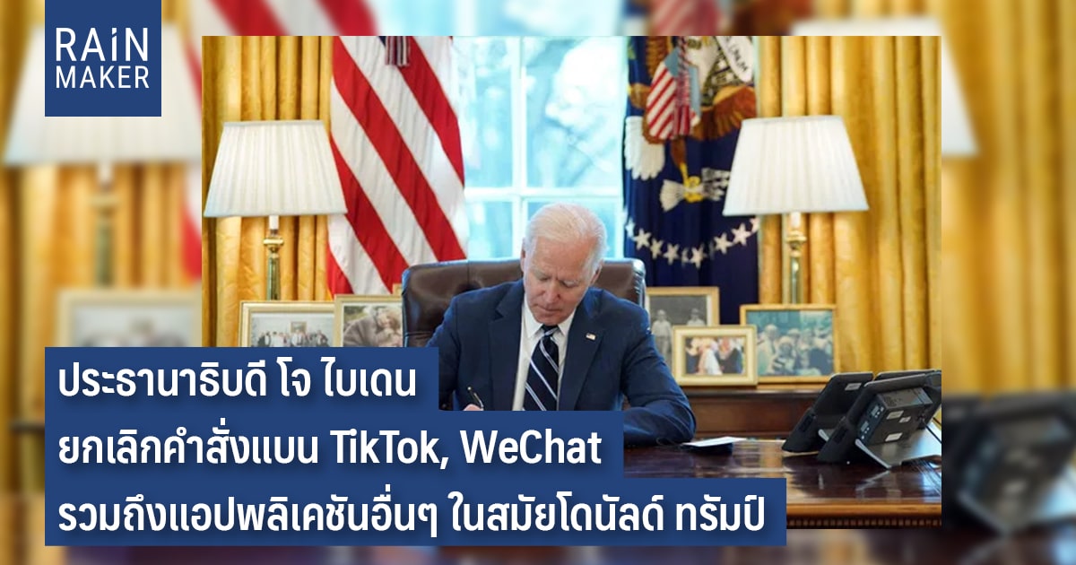 วันนี้ (10 มิ.ย.) ประธานาธิบดี โจ ไบเดน ได้มีประกาศให้ยกเลิกคำสั่งจากสมัยอดีตประธานาธิบดีทรัมป์ ที่สั่งแบน TikTok และ WeChat รวมถึงแอปพลิเคชันจากจีนอื่นๆ อีก 8 แอป ได้แก่ Alipay, WeChat Pay, QQ, QQ Wallet, SHAREit, CamScanner, VMate, WPS Office ซึ่งเป็นแอปพลิเคชันที่เกี่ยวกับการสื่อสารและการเงิน