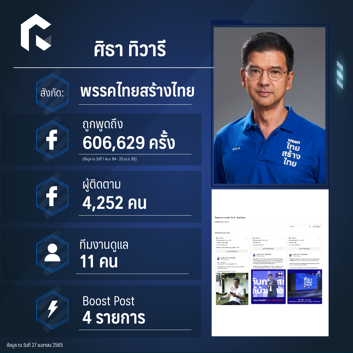การพูดถึงบน Facebook: 7,211,458 ครั้ง (ข้อมูล ณ วันที่ 1 พ.ย. 64 – 20 เม.ย. 65)