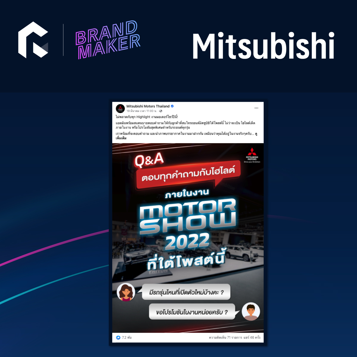 เรียกน้ำย่อยเพิ่มยอดเอ็นเกจเมนต์กับกลุ่มเป้าหมายก่อนเจอกันวันงาน ด้วยการตั้งโพสต์ Q&A ให้ทุกคนได้ร่วมส่งคำถามที่สงสัยไม่ว่าจะเกี่ยวกับงาน หรือโปรโมชันอื่น ๆ ก็ตาม เรียกว่าไม่ลืมกลุ่มคนที่พลาดไปงานไว้ข้างหลังจริง ๆ เพราะถึงแม้ไม่ได้ไปงานก็ได้รู้ข้อมูลเหมือนไปถามเองโดยตรง (โพสต์ต้นฉบับ: https://www.facebook.com/MitsubishiMotorsTH/posts/4531565243610096)
