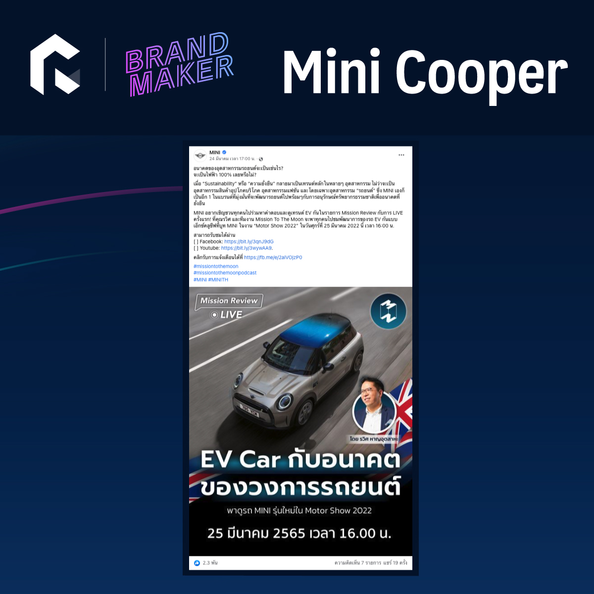 เรียกว่าเป็นการร่วมมือกันที่วินวิน และเปิดโอกาสให้ได้เข้าถึงกลุ่มเป้าหมายใหม่ ๆ มาก ทั้งฝั่ง Mission To The Moon เองก็ได้มีคอนเทนต์ แถมยังได้เข้าถึงกลุ่มเป้าหมายใหม่ ๆ ที่มาร่วมงาน ส่วนฝั่ง Mini Cooper เองก็อาจจะตกลูกค้าจากคนที่ฟังไลฟ์อยู่เช่นกัน