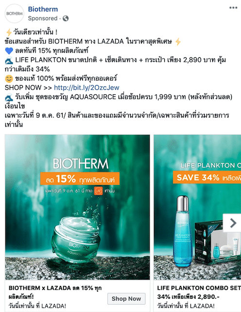 ตัวอย่าง CTA บนเฟซบุ๊ก