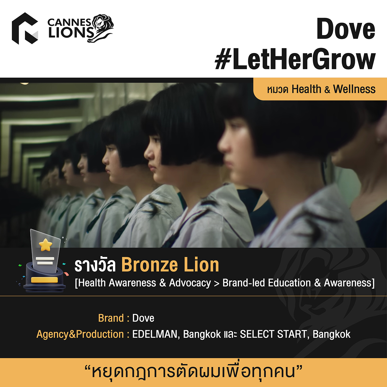 Dove ที่มองเห็นปัญหาของสังคม จึงสร้างแคมเปญ #LetHerGrow เพื่อสนับสนุนการหยุดกฎลงโทษนักเรียนด้วยการตัดผม เพราะผมที่ถูกตัดออกไปไม่ได้เป็นแค่ผม แต่เป็นตัวตน และความมั่นใจของนักเรียนที่ถูกตัดทิ้งไปด้วย