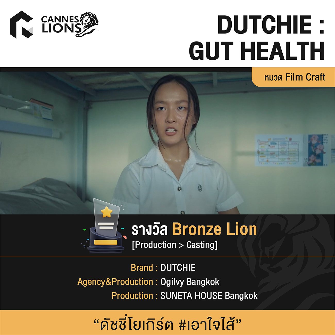เริ่มจากการเล่นใหญ่ของนักแสดงจนได้รางวัลด้านแคสติ้ง (Bronze Lion) และสคริปต์ (Silver Lion) ที่ให้ไปรษณีย์มาเป็นตัวแทนลำไส้คอยดูดซึมสารต่าง ๆ เข้าร่างกายเริ่มเปลี่ยนไปทั้งก่อน และหลังกินดัชชี่ เลยทำให้ได้รางวัลในหมวด Film Craft ไปครอง