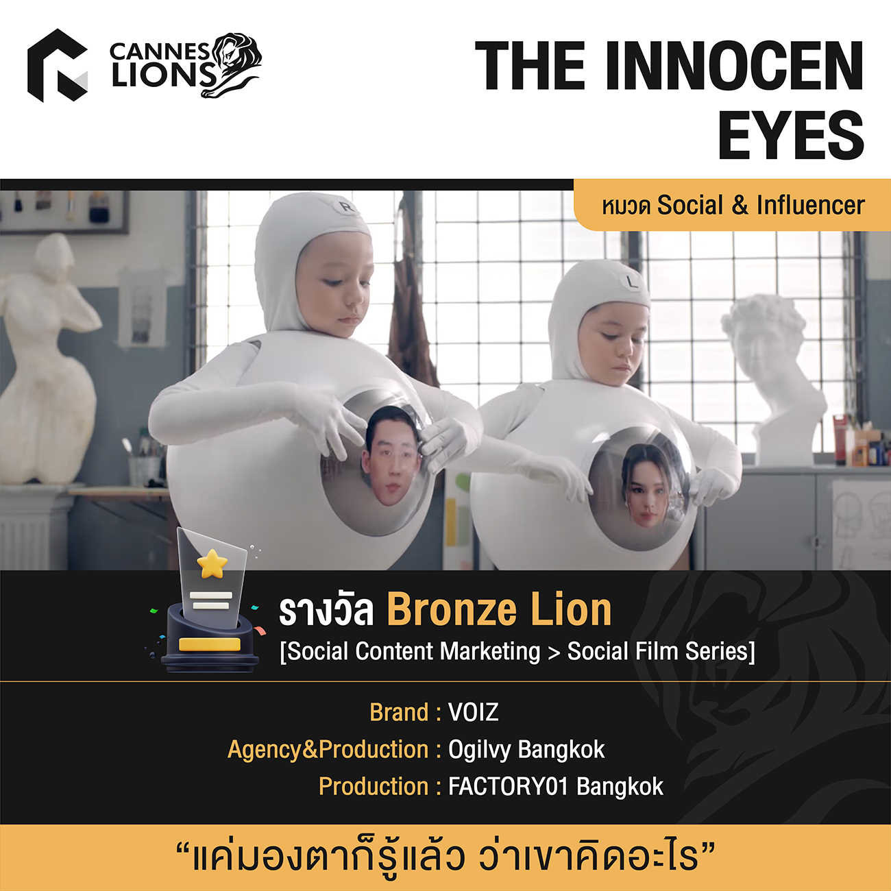 VOIZ กลายเป็นแบรนด์ที่โฆษณาน่าจับตามองที่สุดของไทยไปแล้ว เพราะไม่เคยแผ่วเลยตั้งแต่ได้รางวัล Gold Lions ในปี 2018 และนับตั้งแต่นั้นมา ทุกคนต่างก็รอดูความแปลกใหม่ของแบรนด์นี้มาตลอด เช่นเดียวกับปีนี้ที่โฆษณาแบบซีรีส์ต่อกัน 3 เซสชัน 3 โปรดัก และคว้าไปได้ 3 รางวัล กับแท็กไลน์เดิมอย่าง “VOIZ…แบ่งไม่ได้” ด้วย