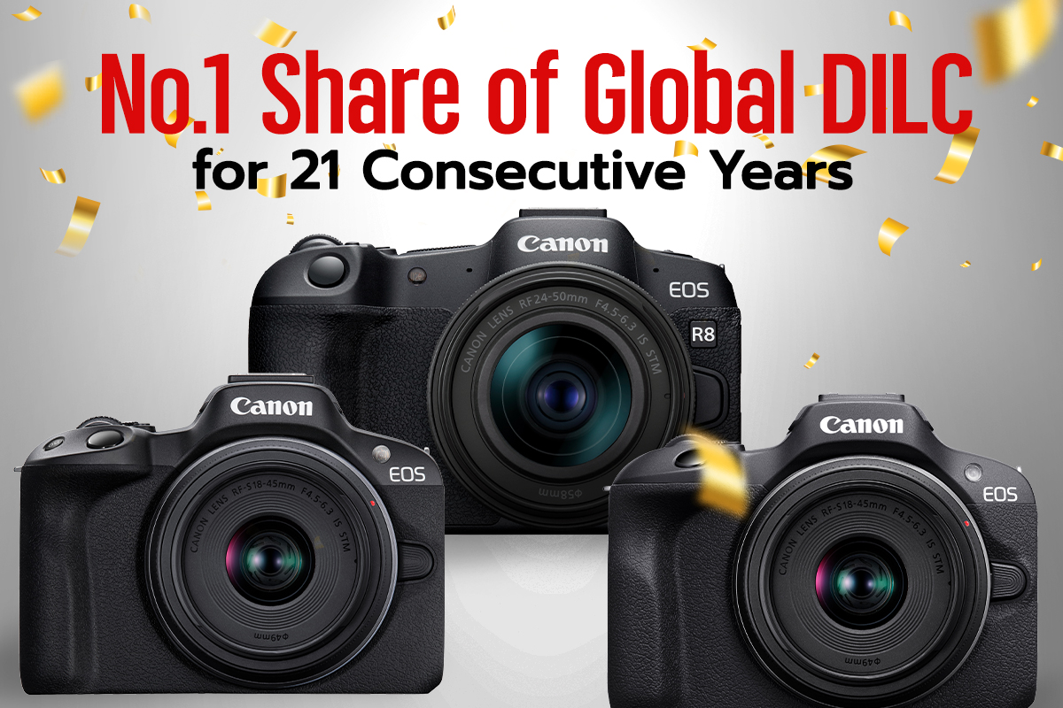 แคนนอน อิงค์ (Canon Inc.) ประกาศครองแชมป์กล้องดิจิทัลแบบถอดเปลี่ยนเลนส์ได้ (กล้อง DSLR และกล้องมิเรอร์เลส) โดยสามารถครองส่วนแบ่งตลาดเป็นอันดับ 1 ทั่วโลกอย่างต่อเนื่องมานาน 21 ปีนับตั้งแต่ปี พ.ศ. 2546 – 2566 พร้อมปล่อยแคมเปญ “You’ R Creator – EOS R Family” ดึงกลุ่มผู้บริโภคยุคใหม่!