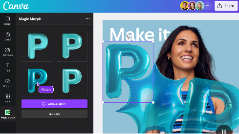 - Magic Morph: เปลี่ยน Text หรือ Shape ในภาพให้สร้างสรรค์มากขึ้นตามต้องการผ่านการป้อน Prompt