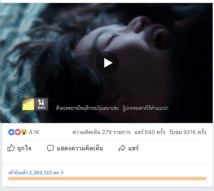 เมื่อเปรียบเทียบกับคลิปวิดีโออีกคลิปก่อนหน้านี้ ที่มีผู้แชร์มากกว่า 2,000 แชร์ กลับสร้างการเข้าถึงไปเพียง 300,000 กว่าเท่านั้น