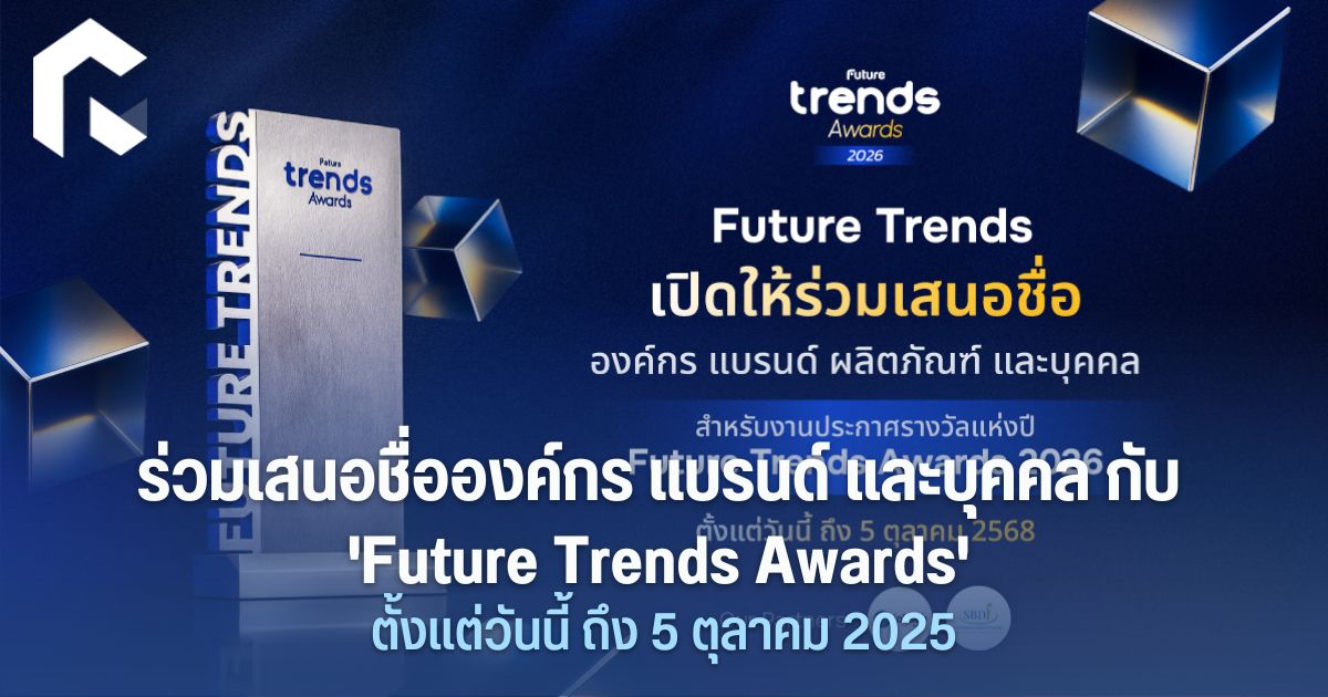 ในตอนนี้ ‘Future Trends Awards’ รางวัลสุดยอดผู้นำเทรนด์แห่งปี เปิดให้เสนอชื่อองค์กร แบรนด์ ผลิตภัณฑ์ และบุคคลแห่งอนาคต ที่สร้างสรรค์นวัตกรรมใหม่ ๆ แล้ว เพื่อมอบรางวัลความสำเร็จให้แก่กลุ่มคนที่มีความคิดสร้างสรรค์โดดเด่น ซึ่งสร้างคุณค่าสูงสุดต่อสังคมในเรื่องต่าง ๆ เป็นวงกว้าง