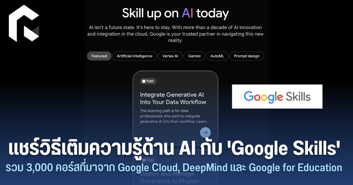 Google อยากที่ะช่วยเพิ่มความรู้เรื่องสกิลการใช้ AI ให้กับผู้คนที่สนใจมากขึ้น จึงมีการสร้างแพลตฟอร์มอย่าง ‘Google Skills’ เพื่อช่วยให้เรียนรู้และเติมสกิลเรื่อง AI ได้ลึกขึ้น ซึ่งไม่ว่าจะเป็นการเรียนเพื่อเติมสกิล หรือการเทรนทีมและใช้เพื่อเก็บ Career Certificates ก็สามารถทำได้