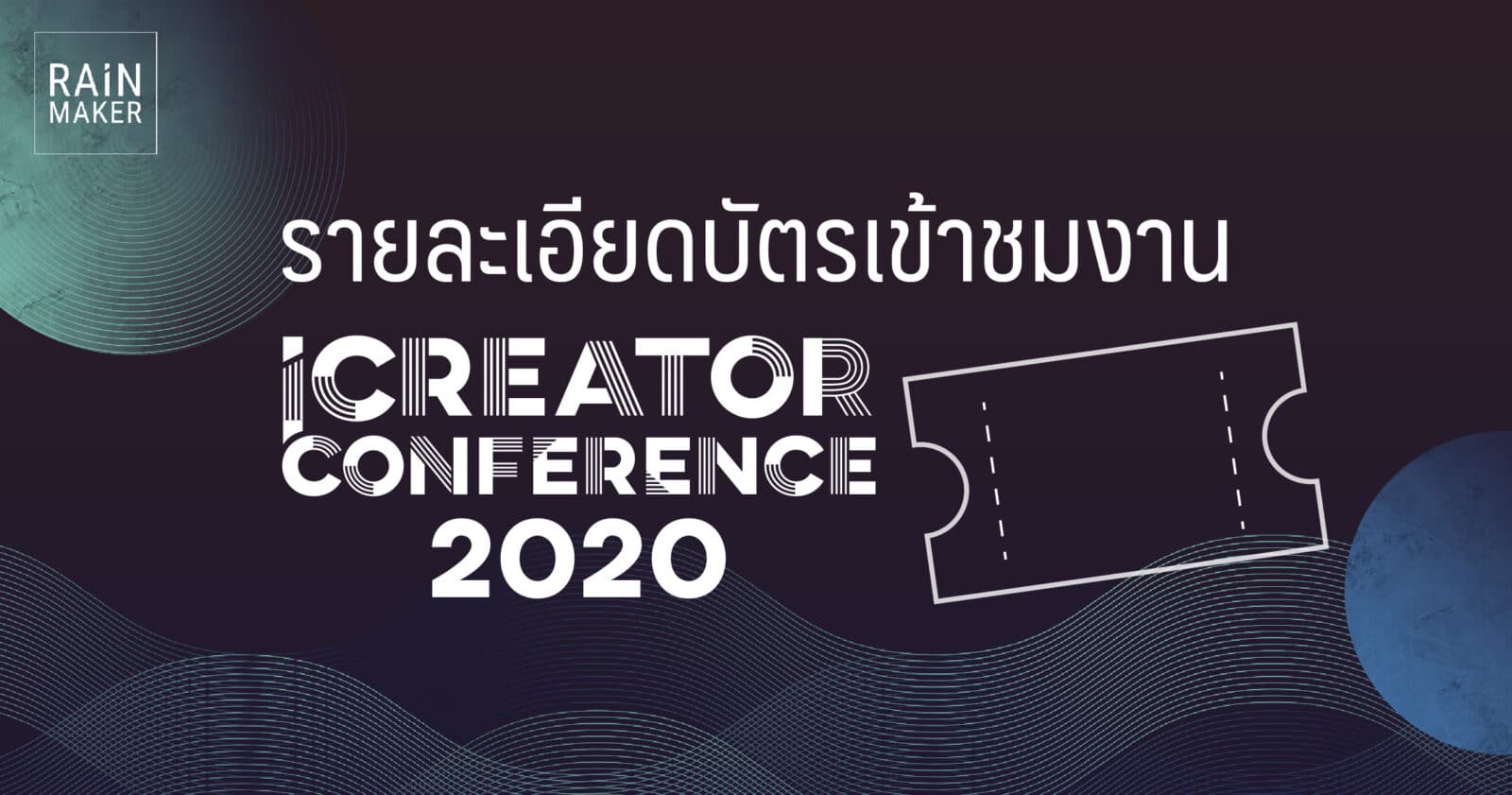iCreator Conference งานอีเว้นท์สัมนาที่รวมตัวคอนเทนต์ครีเอเตอชั้นนำครั้งใหญ่ที่สุดของเมืองไทย ในธีม ‘Next Gen & The Legend’ ที่จะรวบรวมครีเอเตอร์ระดับตำนานและครีเอเตอร์รุ่นใหม่ไฟแรงมาพบกันบนเวทีเป็นครั้งแรก และมีวิธีการเข้าร่วมงานให้เลือกทั้งแบบ On-Ground และ Online แต่ความพิเศษสุดของบัตรแบบ On Ground Ticket (3 Days) ราคา 3,500 บาทนั้นจะมีอะไรบ้าง และต้องรีบหน่อย เพราะเหลือที่นั่งแบบออฟไลน์ 400 ที่นั่งเท่านั้น! iCreator Conference 2020 เปิดจำหน่ายบัตรแล้ววันนี้ ที่ https://www.eventpop.me/e/9296