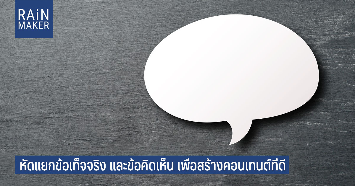 ถ้าเราจะเขียน พูด หรือบอกเล่าเรื่องราวอะไรซักเรื่องลงบนอินเทอร์เน็ต เราจะต้องทำอย่างไร ต้องหาข้อมูล ต้องเช็คความถูกต้องของข้อมูล ต้องดูว่าคนดูจะชอบไหม ต้องดูว่ากระแสตอบรับในเรื่องนั้นจะเป็นอย่างไรบ้างหากลงไป ต้องดูตัวอย่างจากคนอื่น อะไรเต็มไปหมด ในกระบวนการก่อนที่จะได้มาซึ่งคอนเทนต์ อย่างไรก็ตามแม้ว่าคอนเทนต์นั้นจะมีที่มาอย่างไร สุดท้ายแล้วเราสามารถแบ่งมันออกได้เป็น 2 แบบ ได้แก่ ข้อเท็จจริง และข้อคิดเห็น