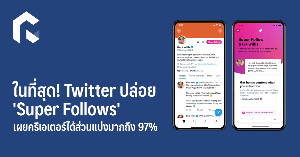 หลังจากเปิดทดสอบฟีเจอร์ ‘Super Follows’ เป็นเวลาหลายเดือน ตอนนี้ทวิตเตอร์ได้ประกาศปล่อยฟีเจอร์อย่างเป็นทางการกับครีเอเตอร์ที่ถูกเลือกในสหรัฐฯ และแคนาดา เฉพาะบน iOS เท่านั้น และเรียกเก็บเงินรายเดือนสำหรับคอนเทนต์เอ็กซ์คลูซีฟจากผู้ติดตามที่สมัครได้