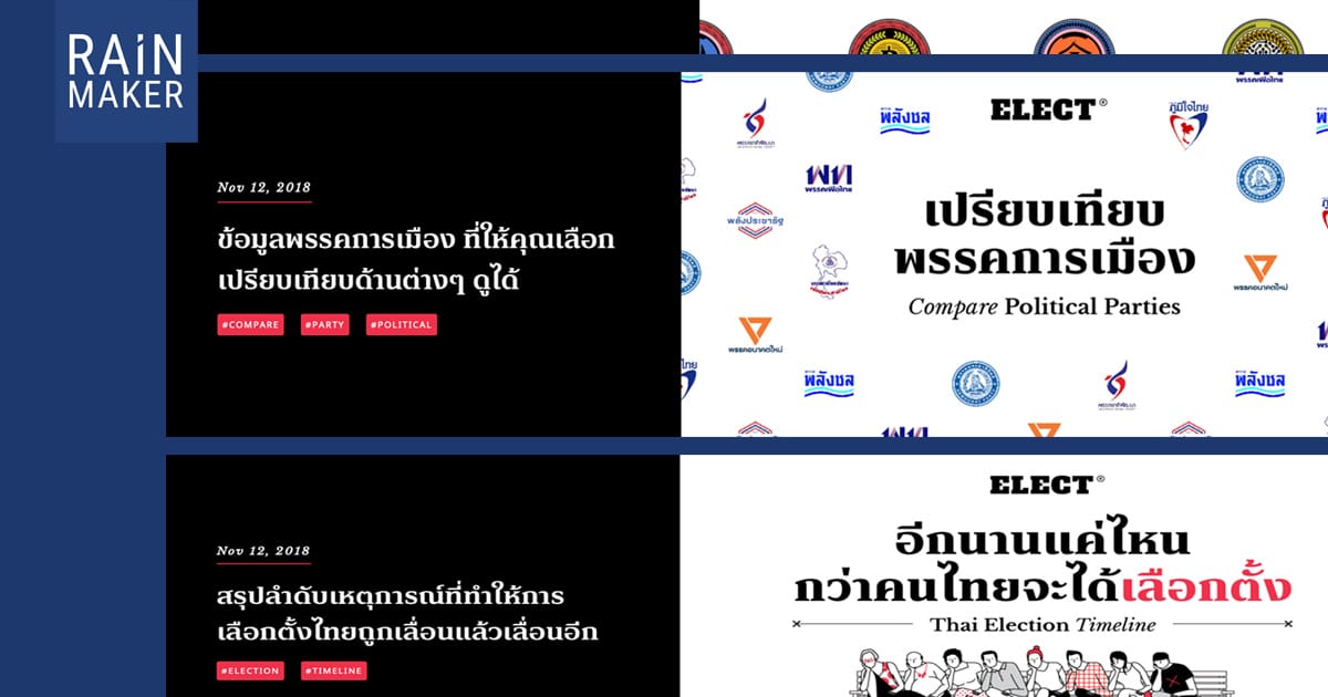 อย่างที่ทีมงาน RAiNMAKER เคยยกตัวอย่างมาให้ฟังกันหลายต่อหลายครั้ง เรื่องการเลือกตั้งในยุคโซเชียลมีเดีย และปรากฏการต่าง ๆ ที่เราอาจจะได้เห็นกันบ้างแล้วในต่างประเทศ เช่นทำไมเราถึงควรตระหนักเรื่องการหาเสียงบนโซเชียล หรือ แนวคิดการรู้ทันสื่อโซเชียล ดังนั้นสิ่งที่อาจจะขาดหายไปก็คือ ข้อมูลที่ถูกต้อง น่าเชื่อถือ และจับต้องได้