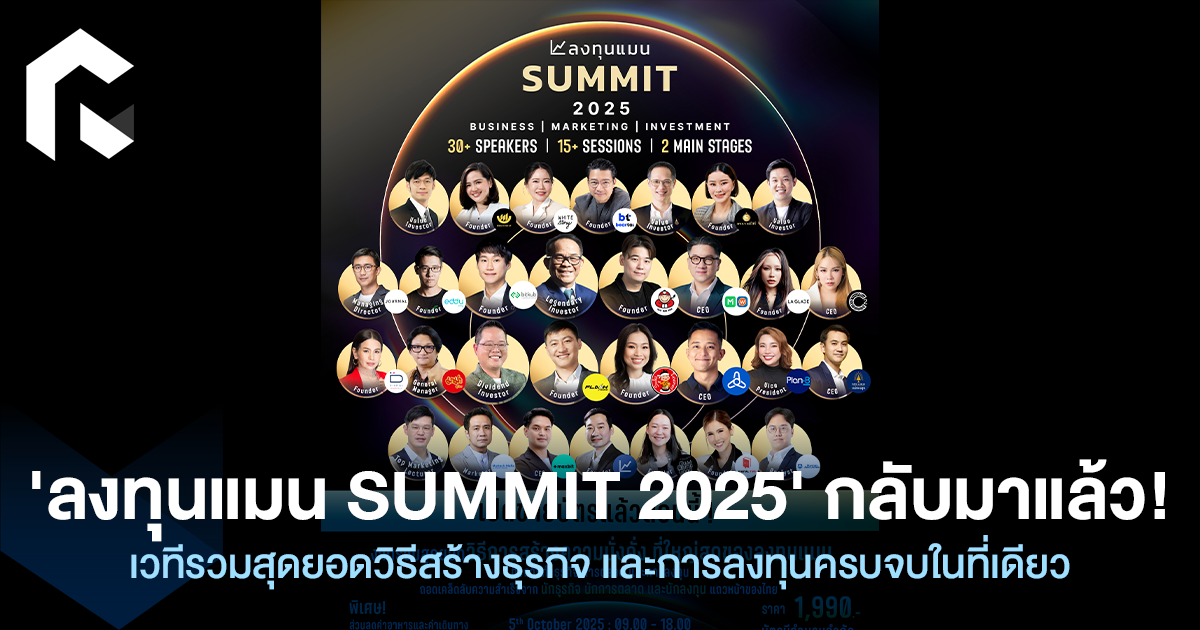 งานรวมสุดยอดความรู้สร้างความมั่งคั่ง ‘ลงทุนแมน SUMMIT 2025‘ สำหรับใครที่อยากมาต่อยอดทั้งในด้านธุรกิจ, การตลาด และการลงทุน รวมถึงสร้างแรงบันดาลใจไปกับ Speakers ชั้นนำของวงการ เรียกได้ว่าโอกาสสำคัญแบบนี้ต้องรีบแล้ว เพราะสิทธิ์เข้าร่วมเรียงลำดับตามเวลาจอง และรับชมย้อนหลังทุก Session ได้อีก 2 เดือนเต็ม