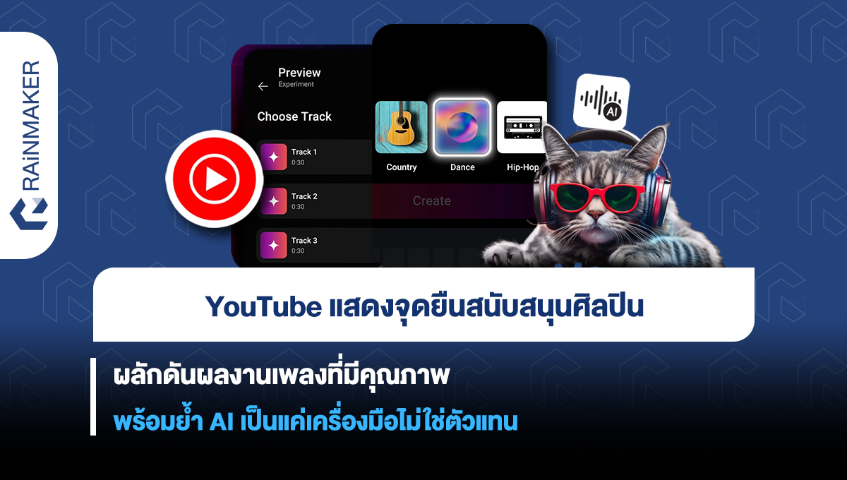 แพลตฟอร์มผู้ให้บริการโซเชียลมีเดียด้านวิดีโอเจ้าใหญ่อย่าง YouTube ออกมาแสดงจุดยืนที่ต้องการสนับสนุนให้ผู้คนในอุตสาหกรรมเพลงสามารถเติบโตได้ ท่ามกลางตลาดโลกที่ตอนนี้มีการแข่งขันด้าน AI จนส่งผลต่อการสร้างสรรค์ผลงานเพลงสูงขึ้น เพราะ YouTube ไม่ได้ต้องการให้ AI เข้ามาแทนที่ศิลปินแต่ต้องการให้ AI เป็นเหมือนผู้ช่วยมากกว่า