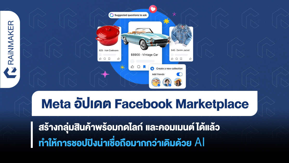 ล่าสุด Facebook Marketplace อัปเดตประสบการณ์การซื้อ-ขายบนแพลตฟอร์ม ด้วยการเปิดตัวฟีเจอร์ใหม่ร่วมกับการใช้ Meta AI หลังจากพบว่า 1 ใน 4 ของผู้ใช้งานประจำวันเป็นกลุ่มวัยรุ่น และวัยผู้ใหญ่ตอนต้น โดยเฉพาะหมวดหมู่ของแต่งบ้าน, แฟชัน และยานยนต์ ซึ่งเป็นสินค้าที่ได้รับความนิยมสูงสุดในตลาด