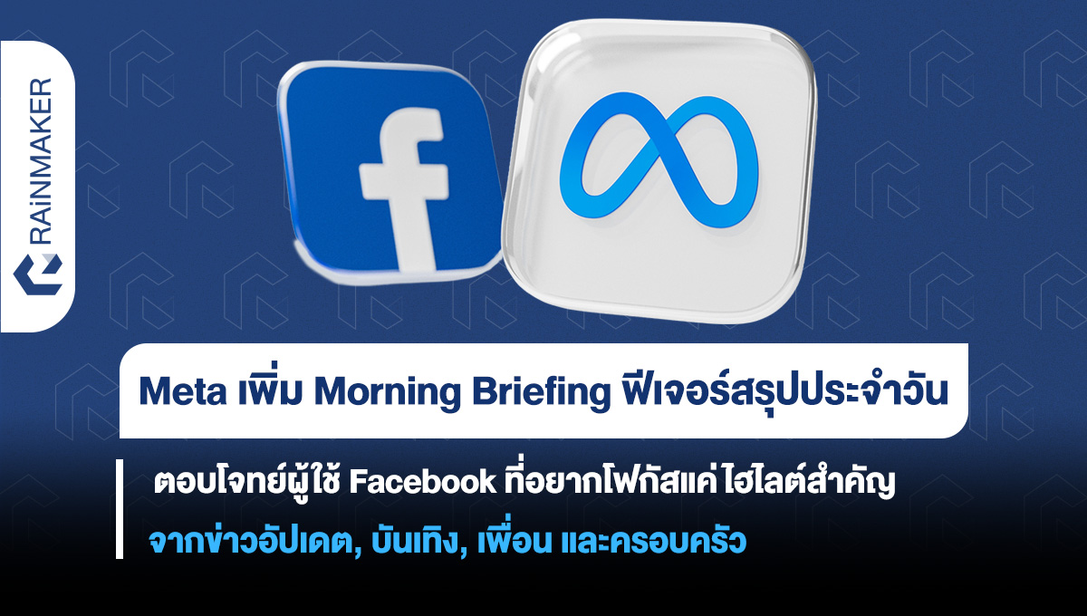 Morning Brief ฟีเจอร์ใหม่จาก Meta ออกแบบมาให้ระบบส่งสรุปข้อมูลรายวันด้วย AI แบบเฉพาะบุคคลให้ผู้ใช้บน Facebook โดยตรง ซึ่งนี่ถือเป็นก้าวสำคัญของแพลตฟอร์มโซเชียลมีเดียในการรับข่าวสารแบบสรุปประจำวัน เพื่อตอบโจทย์ผู้ใช้ที่ต้องการรับคอนเทนต์ที่เกี่ยวข้องกับชีวิตประจำวัน เช่น ข่าวอัปเดต, บันเทิงประจำวัน, ไฮไลต์จากเพื่อน และครอบครัว เป็นต้น