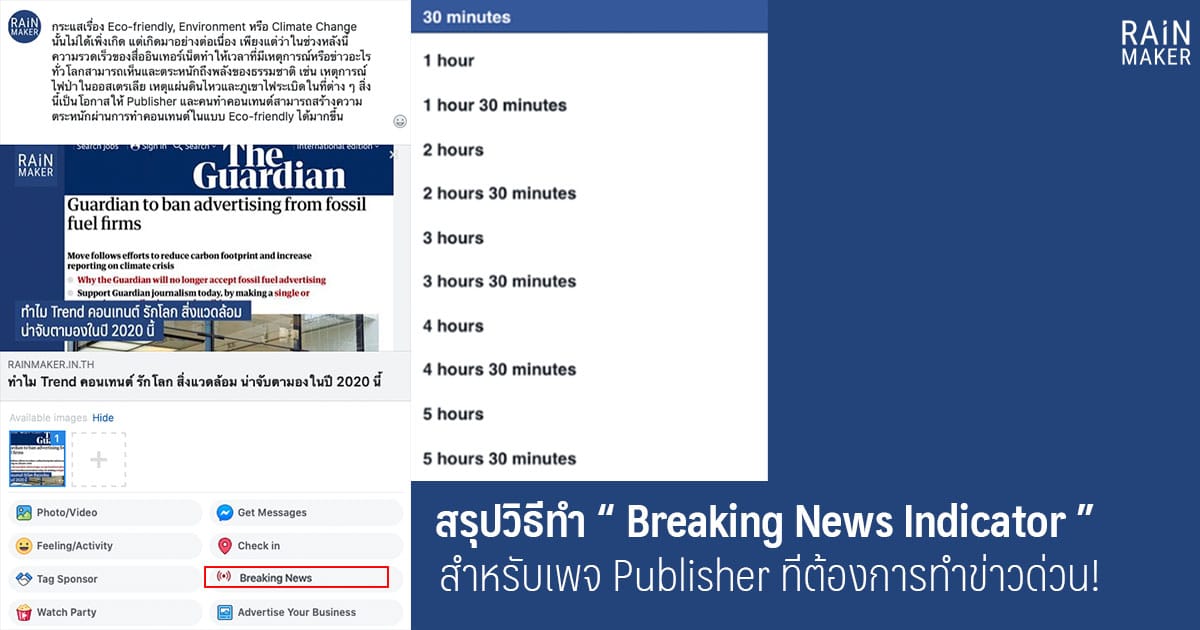 ขั้นตอนแรกสำคัญที่สุด เพจที่ต้องการจะทำ Breaking News Indicator นั้น ต้องเป็นเพจ “ Publisher ” เท่านั้นถึงจะทำได้ในตอนนี้