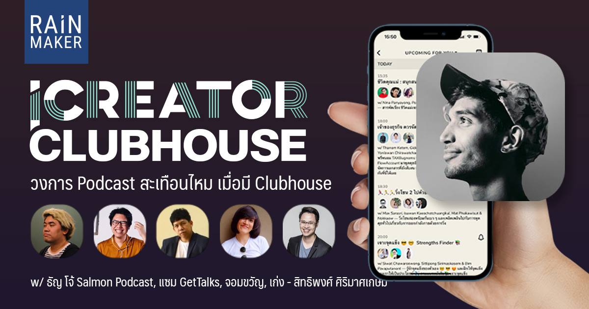 กำลังเป็นที่นิยมอย่างต่อเนื่อง จนมีผู้ใช้เพิ่มขึ้นเรื่อยๆ กับ ‘Clubhouse’ แอปพลิเคชันสร้างห้องสนทนาผ่านเสียง ซึ่งหลายคนอาจคิดว่าแอปพลิเคชันนี้มีความคล้ายกับพอดแคสต์ แต่ต่างกันตรงความสดใหม่แบบเรียลไทม์ นั่นเอง เมื่อคืนวันเสาร์ที่ผ่านมา RAiNMaker เลยเชิญเหล่ากูรูวงการพอดแคสต์ ทั้งคุณโจ้-นทธัญ แสงไชย และคุณธัญ-ธัญวัฒน์ อิพภูดม จาก Salmon Podcast และคุณแซม-พลสัน นกน่วม จาก GetTalks มานั่งคุยถึงประเด็นนี้กันซะเลยว่าเจ้า Clubhouse จะส่งผลอะไรกับวงการพอดแคสต์บ้าง