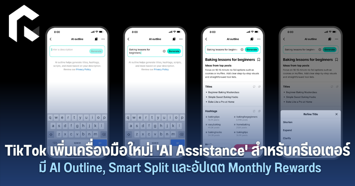 TikTok ได้ประกาศเครื่องมือใหม่สำหรับครีเอเตอร์ในงาน TikTok U.S. Creator Summit ที่นอกจากจะช่วยสร้างคอนเทนต์คลิปได้ง่ายขึ้นแล้ว ยังช่วยเพิ่มโอกาสในการสร้างรายได้ด้วยผู้ช่วย AI ใหม่โดยเฉพาะ ไม่ว่าจะเป็นเครื่องมืออย่าง AI Outline, Smart Split ที่ช่วยคิดและคัทแบบอัตโนมัติแบบครบจบมากขึ้น