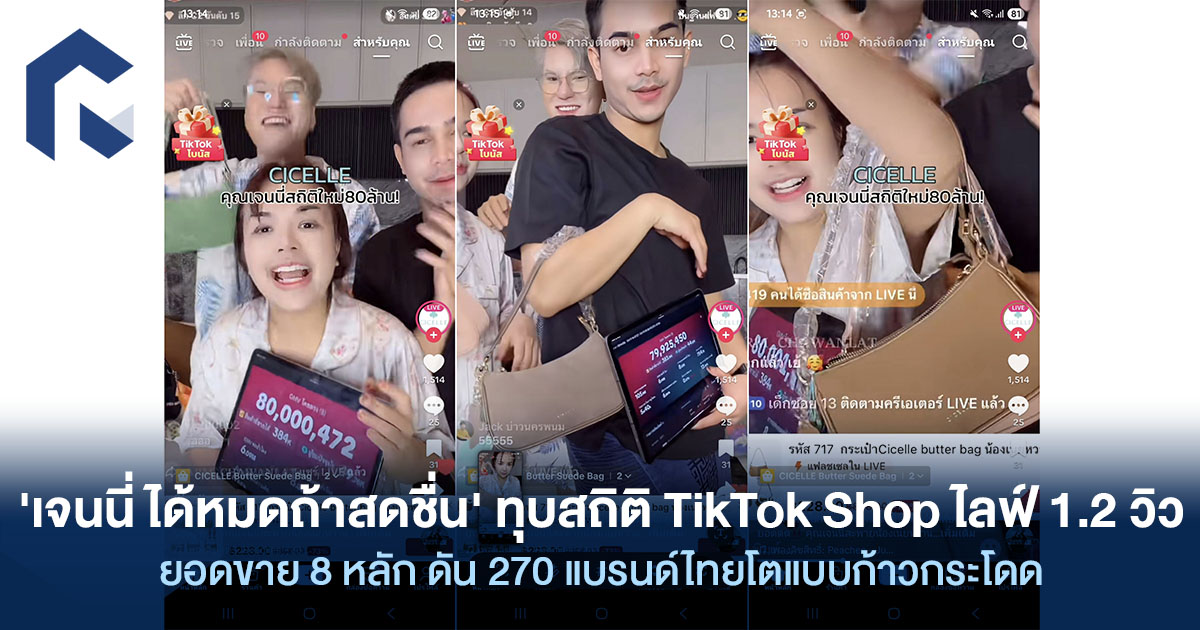 “เจนนี่ ได้หมดถ้าสดชื่น” ทุบสถิติ TikTok Shop LIVE ด้วยยอดคนดูไลฟ์สูงสุดในประวัติศาสตร์ถึง 1.2 ล้านวิว พร้อมสร้างยอดขายสูงถึง 8 หลัก ดันกว่า 270 แบรนด์ไทยสู่ความสำเร็จ โดย 3 แบรนด์ไทยทั้ง Sureeporn Cosmetics, Cicelle และ Kacha Brand มาเผยเบื้องหลังความสำเร็จ และกลยุทธ์การต่อยอดทางธุรกิจจากปรากฏการณ์เทศกาลเจนนี่