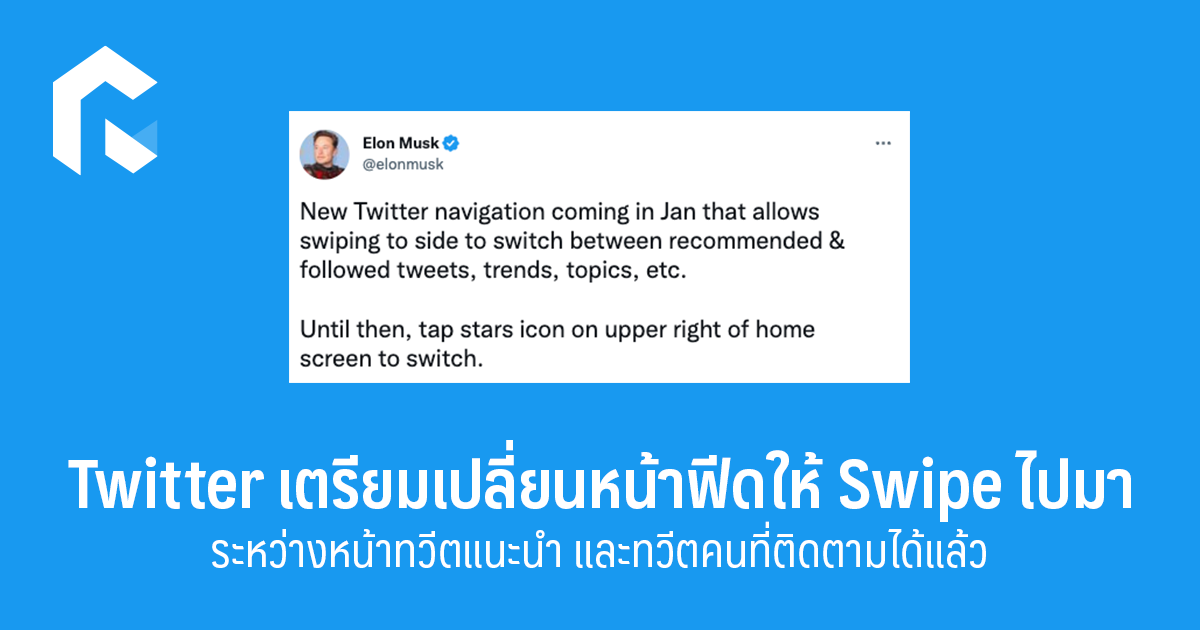 Twitter จะปรับหน้าฟีดให้สามารถเลื่อนได้ เพื่อให้ผู้ใช้งานสามารถเลื่อนสลับไปมาระหว่างหน้าฟีดทวีตที่แนะนำ ทวีตจากคนที่ติดตาม เทรนด์ ท็อปปิก หรืออื่น ๆ ได้ง่ายขึ้น จากปัจจุบันที่ผู้ใช้งานต้องเปลี่ยนหน้าฟีดไทม์ไลนืได้โดยการกดปุ่มไอคอนรูปดาวที่อยู่มุมขวาบนของหน้าจอเพื่อเลือกรับทวีตที่แนะนำ หรือทวีตล่าสุดจากคนที่ติดตามเท่านั้น