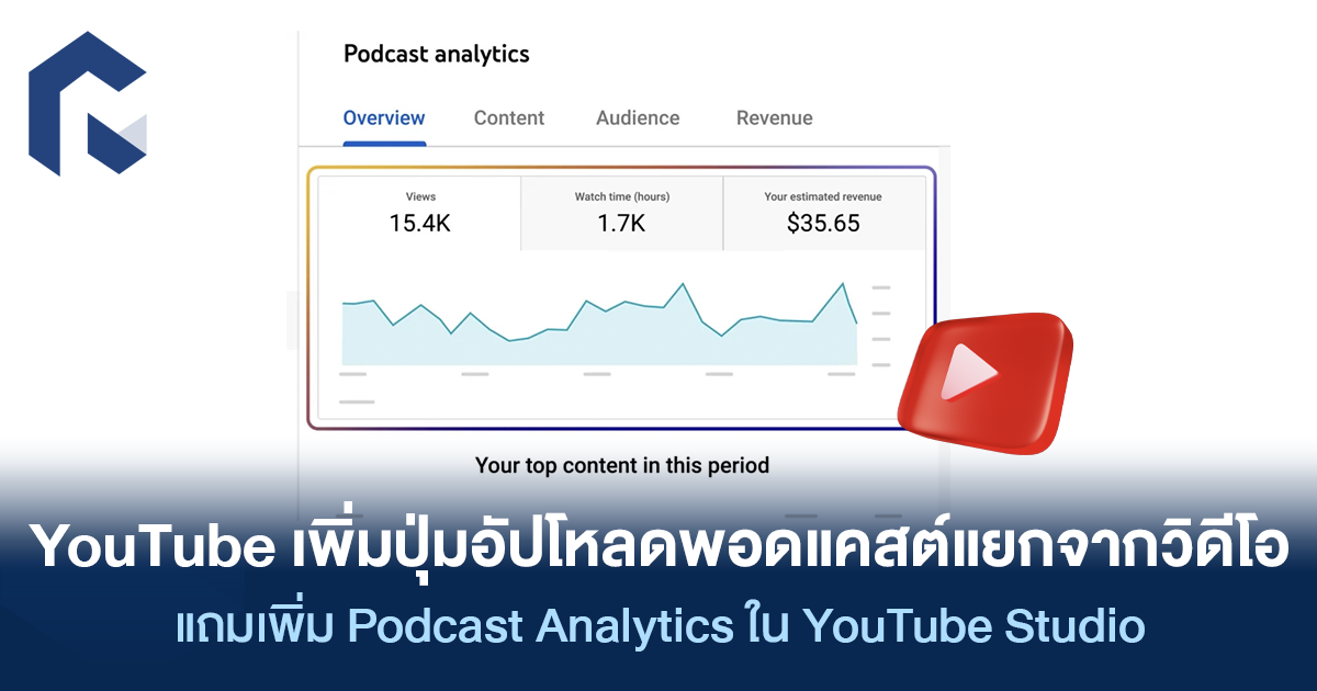 YouTube เปิดตัวเครื่องมือใหม่สำหรับครีเอเตอร์สายพอดแคสต์ให้สามารถอัปโหลดพอดแคสต์แยกจากการอัปโหลดวิดีโอปกติผ่าน YouTube Studio ได้เลย หลังจากทดลองใช้งานตัวเลือกดังกล่าวกับผู้ใช้บางกลุ่มไปเมื่อเดือนก่อน