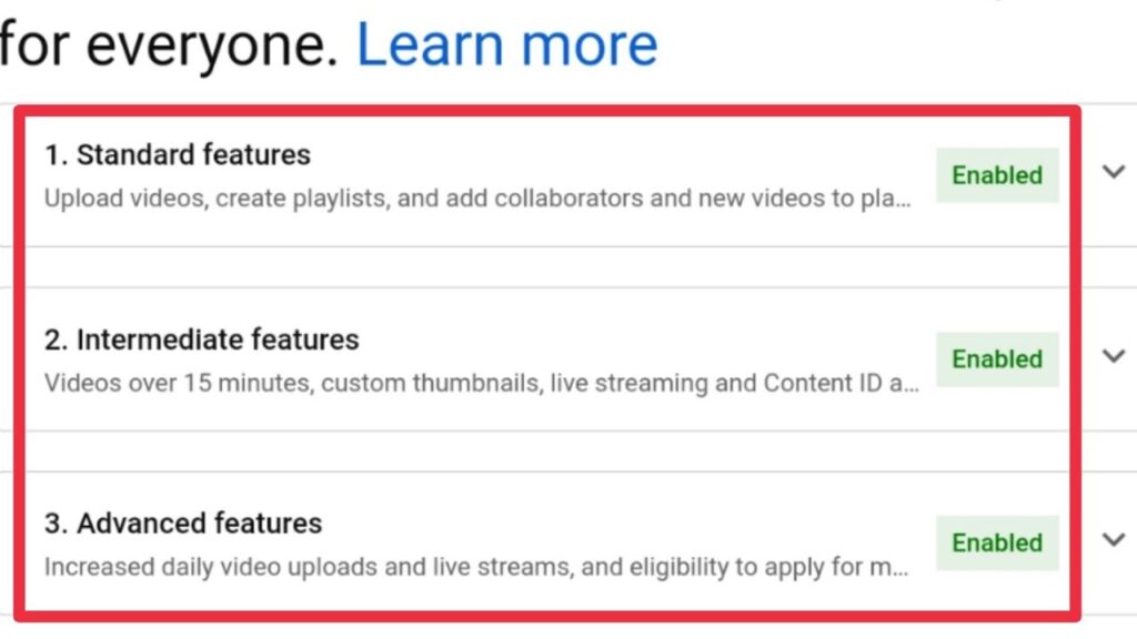 การเปิดใช้งาน YouTube Community สามารถใช้งานได้ผ่านสิ่งที่เรียกว่า Advanced Features โดยกดเข้าไปที่ Studio > Settings > Channel > Feature eligibility