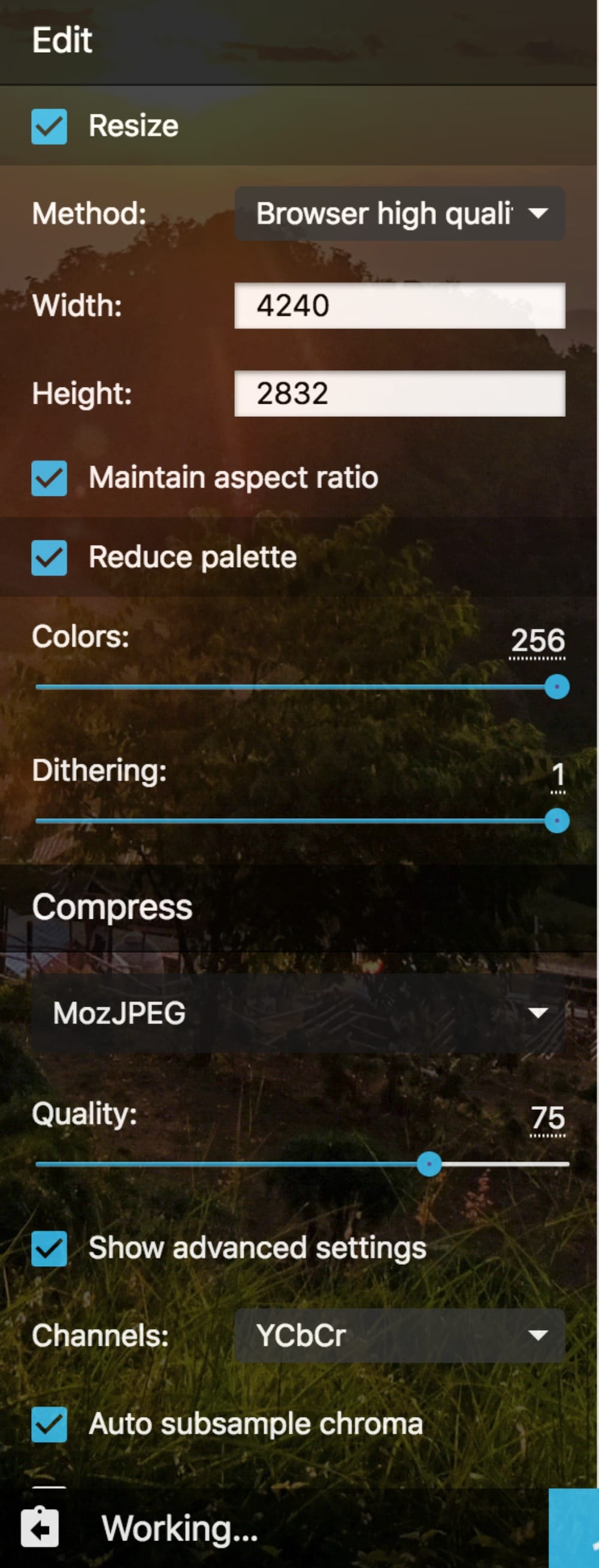 ถึงแม้ในเบื้องต้นโปรแกรมจะจัดการภาพให้เราเรียบร้อย แต่โปรแกรมเองยังมี Option ในการจัดการรูปภาพเยอะมากที่ด้านขวา ตั้งแต่ Quality ของภาพ (ยิ่งเยอะ ไฟล์ยิ่งอ้วน), นามสกุลไฟล์ภาพ, resize ขนาดภาพ ซึ่งโดยรวมของการลดขนาดไฟล์ภาพ ก็เพื่อนำภาพไปใช้กับงานเว็บไซต์นั่นเอง