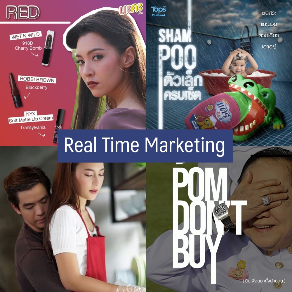 ในปีก่อนๆเริ่มมีกระแสการทำ Real Marketing ของเพจต่างๆออกมาโดยส่วนมากจะอิงจากกระแสข่าว หรือประเด็นในโลกโซเชี่ยล อย่างชิ้นที่เป็นที่พูดถึงมากๆก็คือ ข่าวการหย่าร้างกันของปลื้มและทับทิม วงในก็ออกมาทำรวมร้านทับทิบกรอบ จนปีนี้ด้วยกระแสของละครบุพเพสันนิวาส เป็นตัวจุดกระแส Real Time Content , Real Time Marketing ให้คึกครื้นเป็นพิเศษ ส่งผลให้ตลอดทั้งปีเราได้เห็นคอนเทนต์ Real Time ที่อิงกระแสจากละครและข่าวมากขึ้น