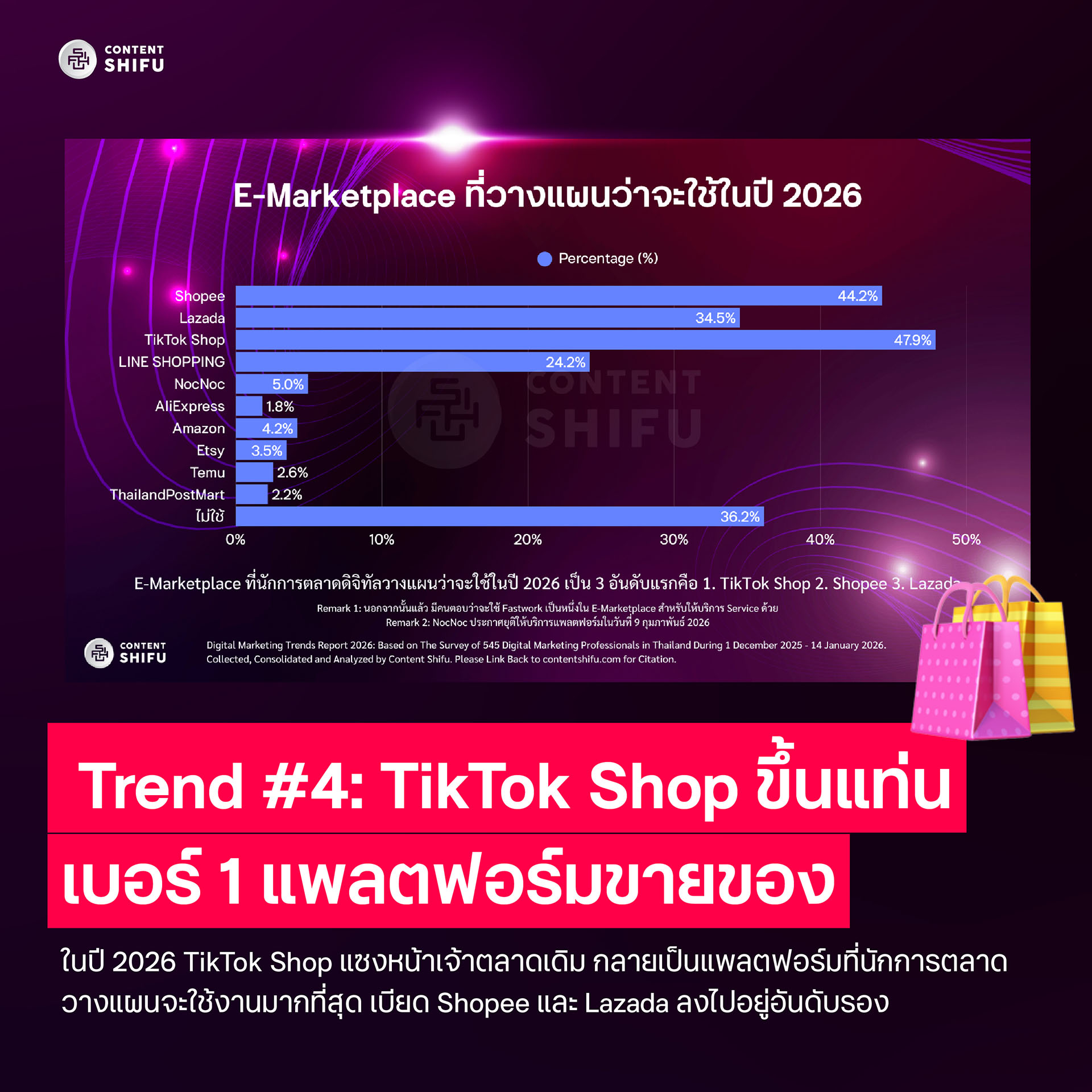 ปี 2026 TikTok Shop กลายเป็นแพลตฟอร์มที่นักการตลาดวางแผนใช้งานมากที่สุด แซงหน้า Shopee และ Lazada สะท้อนการผสานระหว่าง Content และ Commerce ที่มีประสิทธิภาพสูงขึ้นอย่างชัดเจน