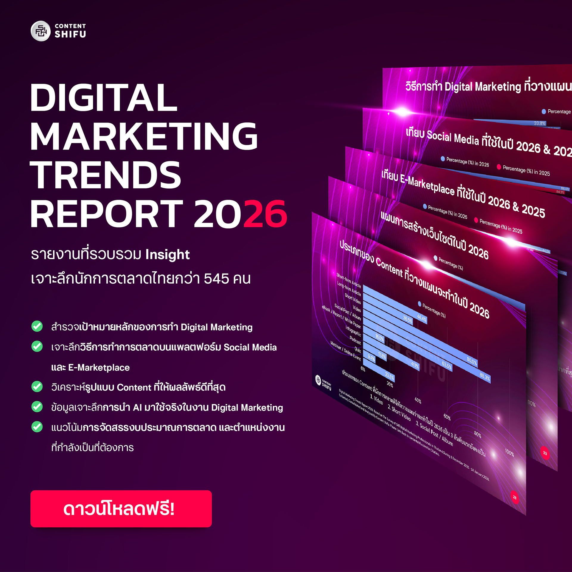 - ดาวน์โหลด Report ฉบับภาษาไทย: https://contentshifu.com/resource/digital-marketing-trends-report-2026/