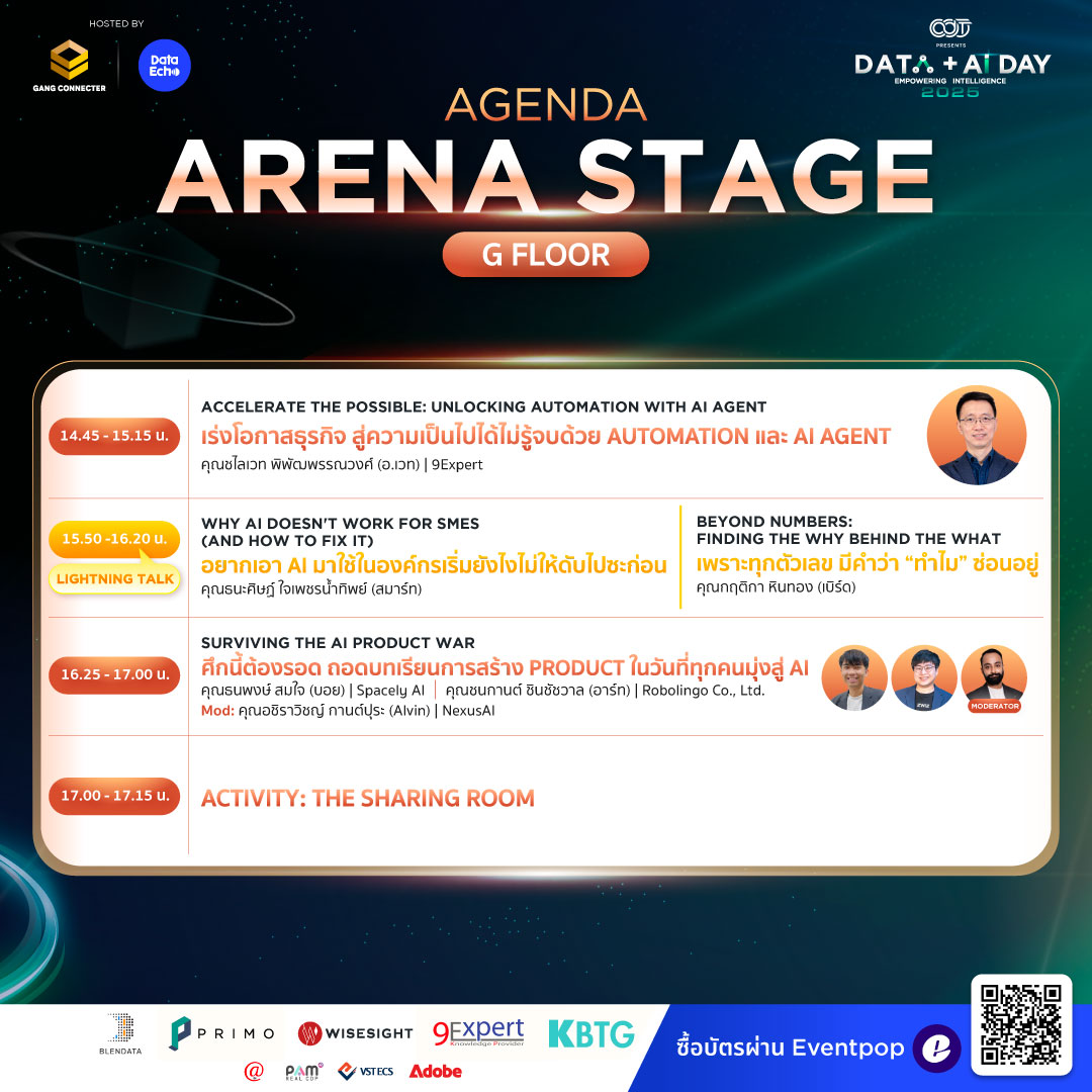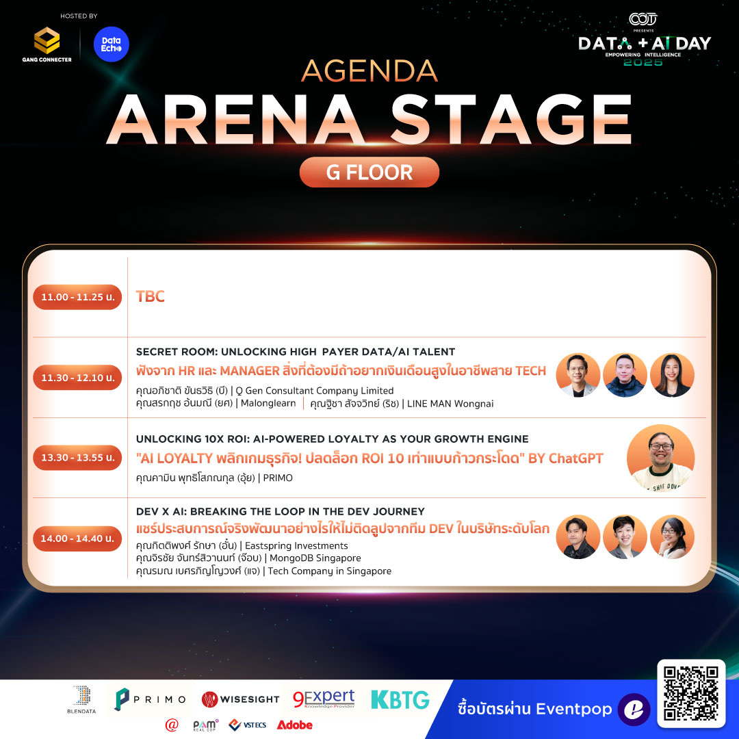 นอกจากความรู้ ยังมีกิจกรรม Networking สุดพิเศษให้คุณได้ Connect กับเพื่อนร่วมสาย Data + AI และลุ้นรับของรางวัลภายในงาน (แต่แอบกระซิบว่า เหลือแค่ 48 ใบสุดท้ายแล้วนะ)