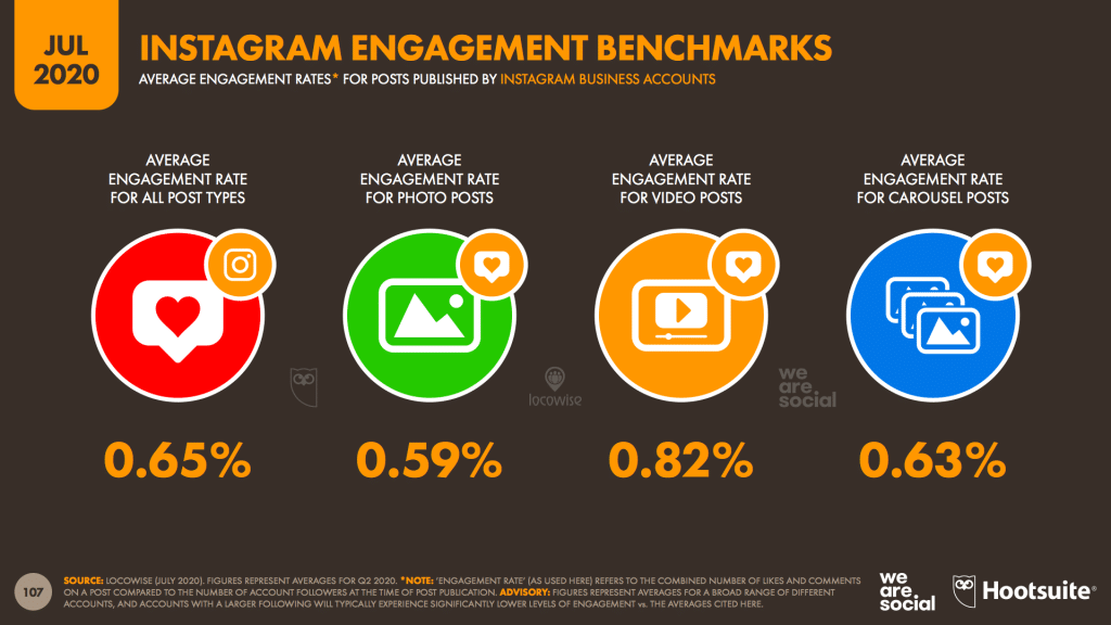 – โพสต์ทุกประเภทที่ลงบนอินสตราแกรม ส่วนใหญ่จะมี Engagement เฉลี่ยอยู่ที่ 0.65%