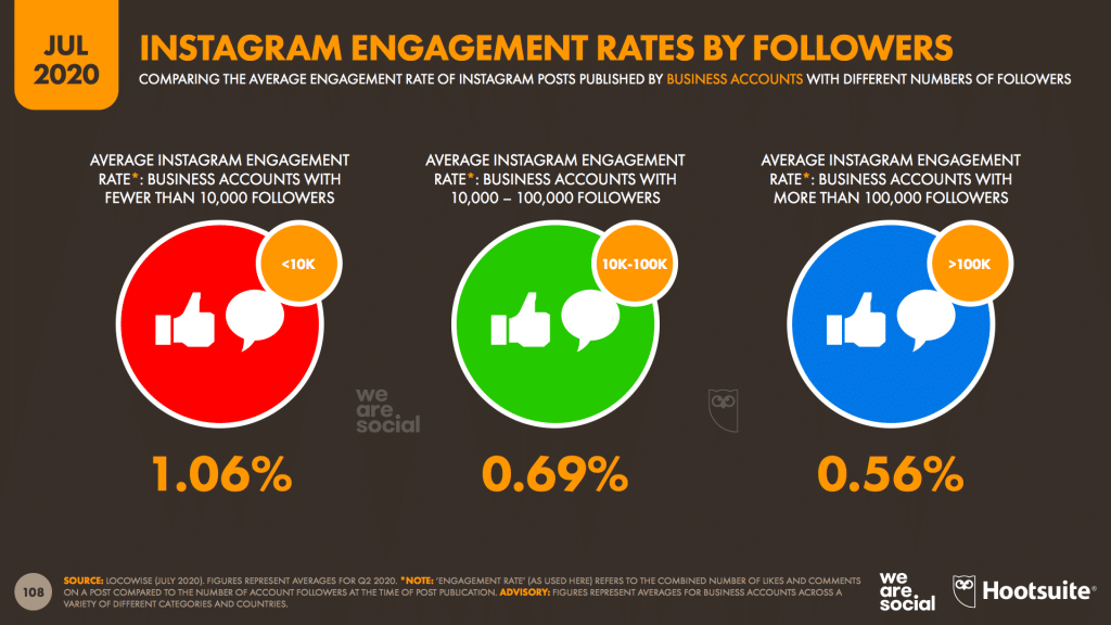 – แต่หากมีผู้ติดตามมากกว่า 100,000 จะมี Engagement จากผู้ติดตามอยู่ที่เพียง 0.56%