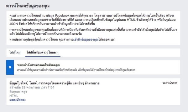 3. หลังจากที่กดสร้างไฟล์แล้ว ก็รอให้เขาเตรียม “ไฟล์ที่พร้อมดาวน์โหลด” นะคะ