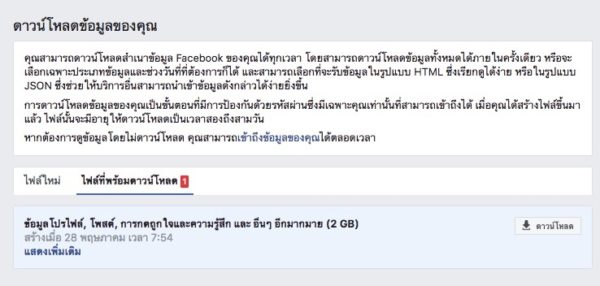 4. ไฟล์พร้อมโหลดแล้วค่ะ ของเราได้มา 2GB ของคนอื่นอาจจะน้อยกว่านี้ก็ได้นะคะ แล้วแต่ข้อมูลที่แต่ละคนมีอยู่ในเฟสบุ๊ค
