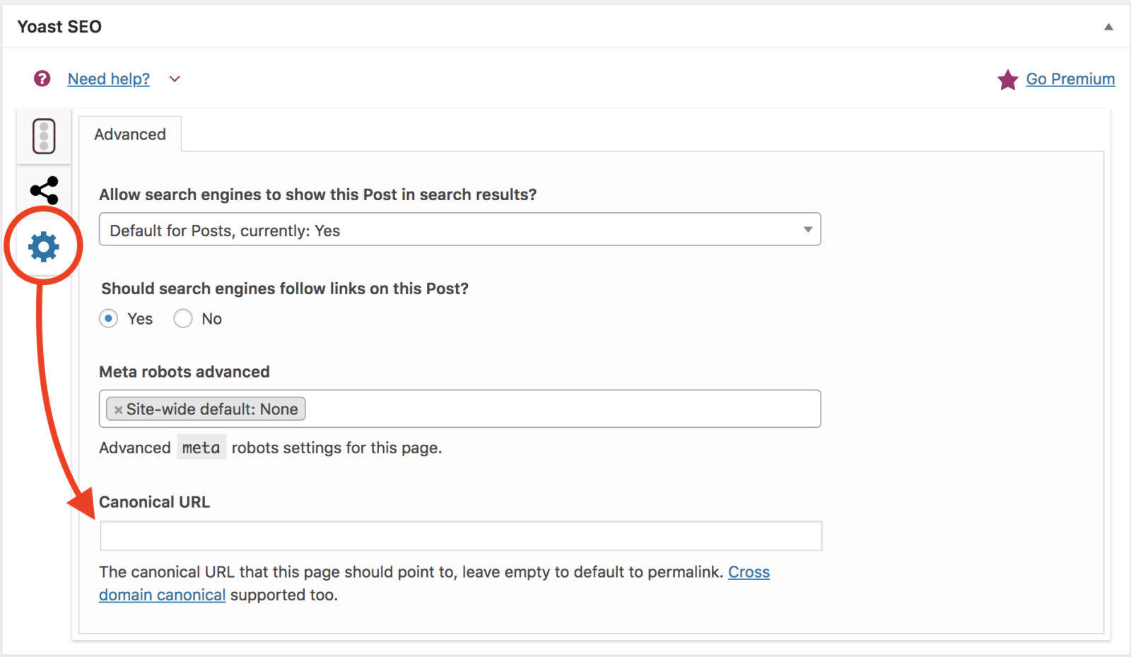 ถ้าใครใช้ WordPress แล้วติดตั้ง Plugin Yoast SEO เอาไว้ ตรงนี้เค้าจะช่วยใส่ Canonical Tag เอาไว้ให้อัตโนมัตอยู่แล้วครับ โดยการชี้ไปที่ permalink ที่เราตั้งค่าเอาไว้ แต่ถ้าใครต้องการจะชี้ไปหน้าอื่น ที่ด้านล่างของบทความจะมีให้ใส่ Canonical URLs ให้เราใส่ URL ที่ถูกต้องแบบเป๊ะๆ ลงไปได้ (แต่โดยทั่วไปก็ไม่ต้องทำนะ)