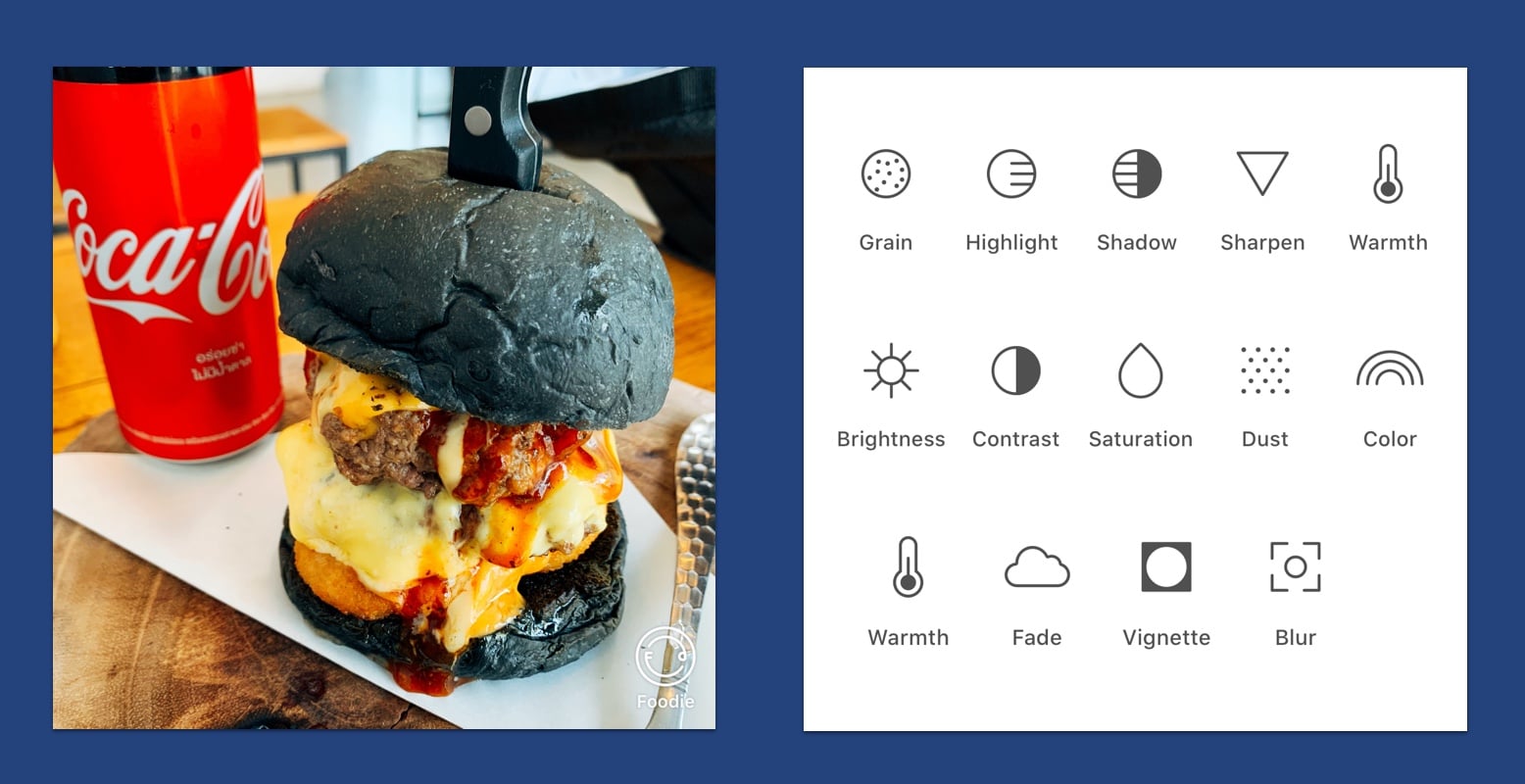 Foodie เป็นแอปฯ ถ่ายภาพและแต่งภาพ ที่ออกแบบมาสำหรับใช้งานกับภาพอาหารโดยเฉพาะ (แต่กับภาพทั่วไปก็ใช้ได้นะ) ในการถ่ายและแต่งภาพ เครื่องมือต่างๆ บนแอปฯ ตัวนี้จะช่วยเราได้เยอะมากในวันที่ไม่ได้พกกล้องใหญ่ หรือต้องการแต่งภาพแบบไวๆ ขึ้นงานทันที
