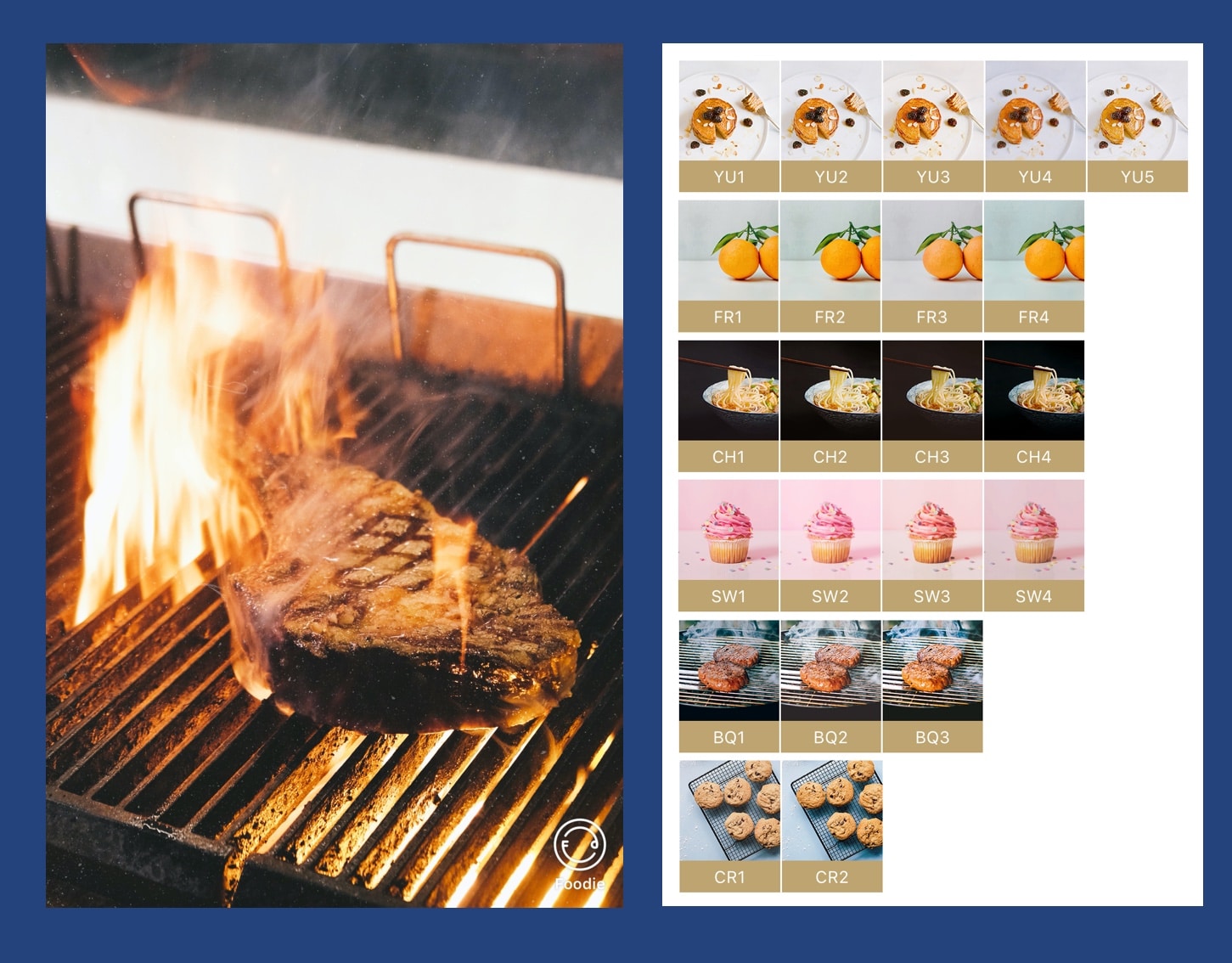 ตอกย้ำความเป็นแอปฯ ที่สร้างมาเพื่อแต่งภาพอาหาร โดยในแอปฯ Foodie จะมีการเตรียม filter ที่จัดหมวดหมู่สำหรับภาพอาหารแต่ละแบบมาให้โดยเฉพาะ ทั้งของหวาน, ผลไม้, สเต็ก และอีกมากมาย ซึ่งลองใช้แล้วค่อนข้างประทับใน