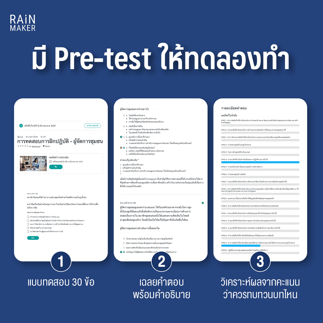 สามารถเข้าไปลองทำแบบทดสอบได้ที่ : แบบทดสอบผู้จัดการชุมชน Facebook