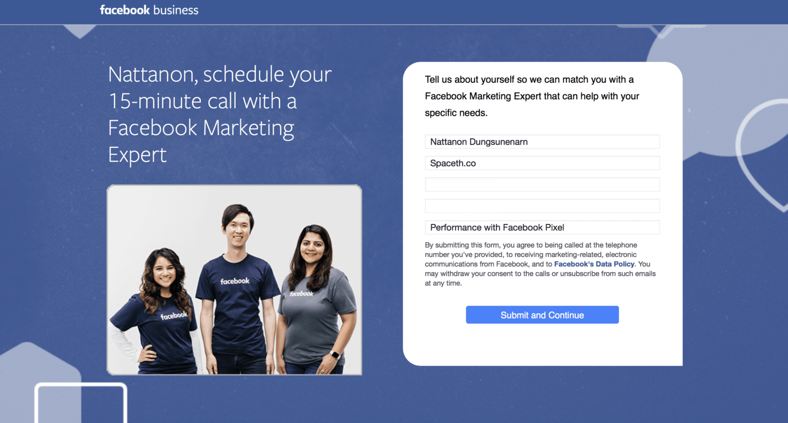 วิธีนัดเวลาติดต่อกับ Facebook Marketing Expert