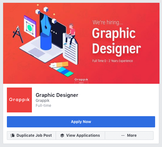 Facebook Job คือฟีเจอร์สำหรับ Facebook Page ที่จะทำให้บริษัทหรือเจ้าของเพจสามารถประกาศหาคนมาทำงานได้อย่างง่ายดายเหมือนกับการโพสต์สถานะแบบทั่วไป
