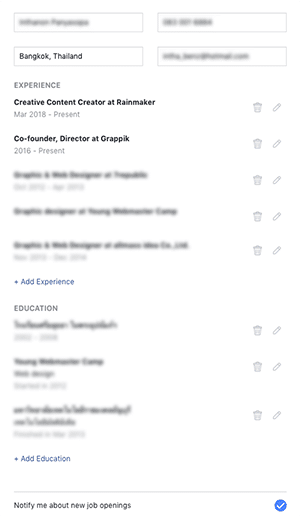 หลังจากกด Apply Now ระบบจะขึ้น Pop-up มาและนำข้อมูลส่วนตัวเรามากรอกให้เสร็จเรียบร้อย ตั้งแต่ชื่อ-นามสกุล, เบอร์ติดต่อ, การศึกษา, ประสบการณ์ และถ้าข้อมูลส่วนไหนผิดก็สามารถแก้ไขและเพิ่มเติมได้เองทันที ข้อมูลครบถ้วนก็กด Send ได้เลย เท่านี้เป็นอันเสร็จการสมัครงานด้วยฟีเจอร์ Facebook Job